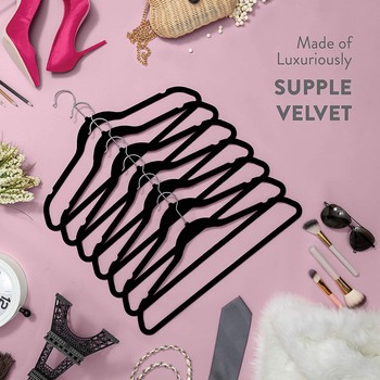 Premium Quality Ultra Thin 30 Pack Sturdy Space Saving Black Velvet Fabric Closet Clothes Hangers for Adult Daily Use
