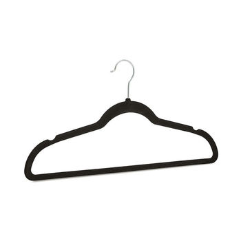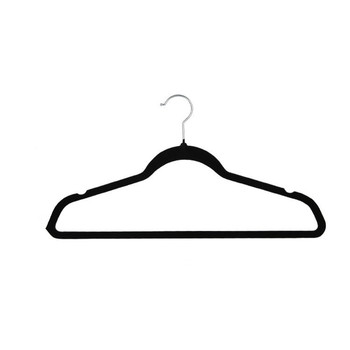 Custom Non Slip Shoulder Notches Flocking Fabric Hangers Space Saving Non slip Black Velvet Hanger for Closet Suit Dress